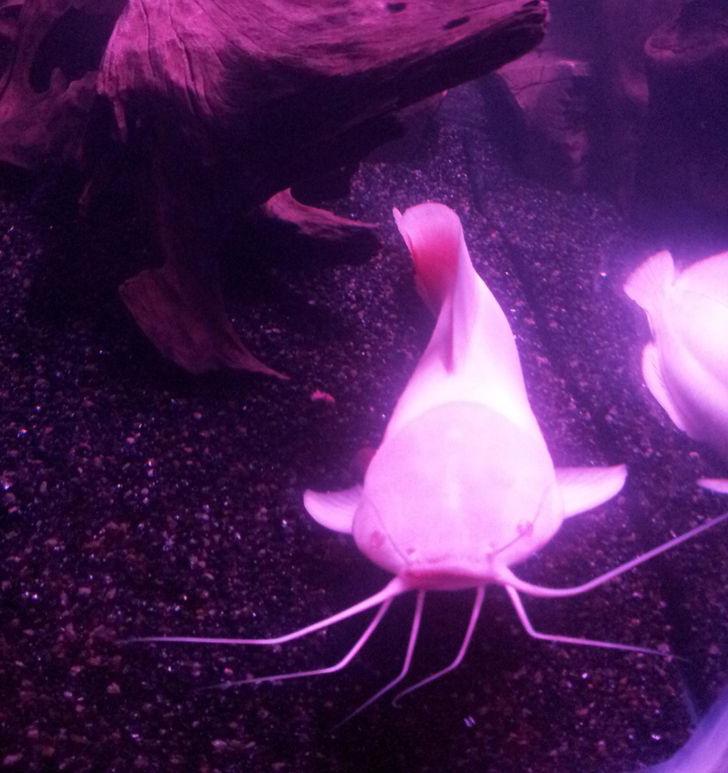 ▼這隻魚的鱗片在燈光下閃閃發亮。