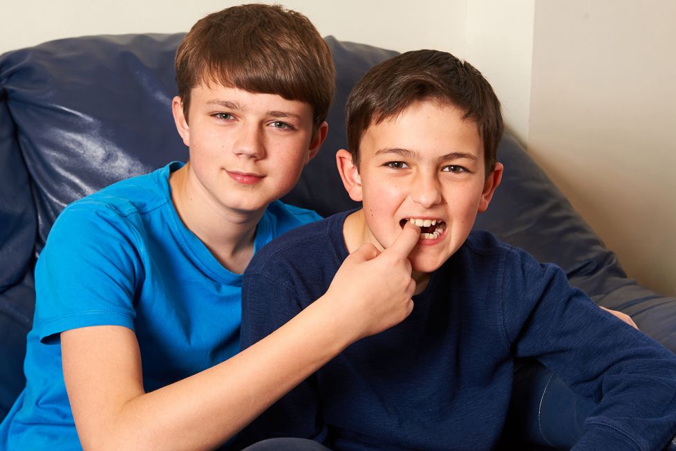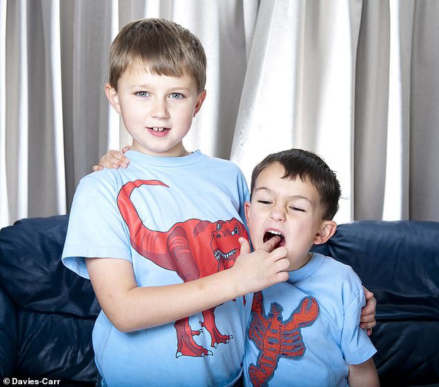 ▼短片中,這對可愛的兄弟溫馨互動,查理玩著玩著就抓起亨利的手指放到嘴巴裡咬下去。亨利不覺得疼,但還是說「查理咬我」。