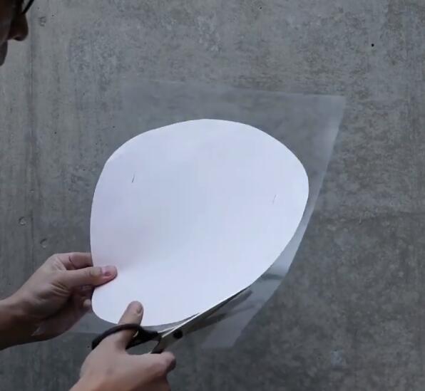 1.首先,點擊這裡下載製作吉岡德仁提供的模板,版型有3個大小,分別是265mm X 265mm、215mm X 265mm和200mm X 265mm,大家可以根據自己的臉型挑選合適的尺寸,然後印下來。之後找一張L型夾(透明的),並裁切成一個A4的大小。
