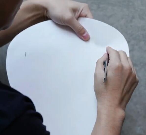 ▼3.之後對照模板上有兩個記號的位置,用美工刀割出兩個洞。