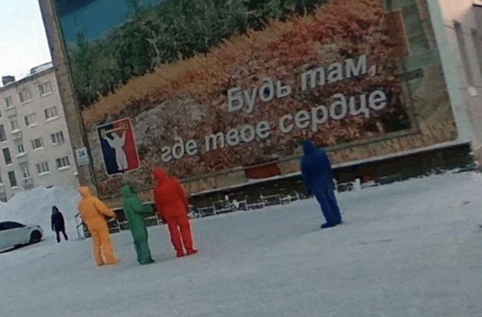 2021年05月24日Google地圖經常拍到有趣的畫面,透過街景服務,說不定能找到趣味景象。最近一組街景截圖就在網路上引發熱議。只見俄羅斯的一片冰天雪地中,4人分別身穿紫色、綠色、黃色和紅色的衣服,還戴著同色的口罩,走在空曠的街道上。他們的模樣讓人想到可愛的「天線寶寶」!