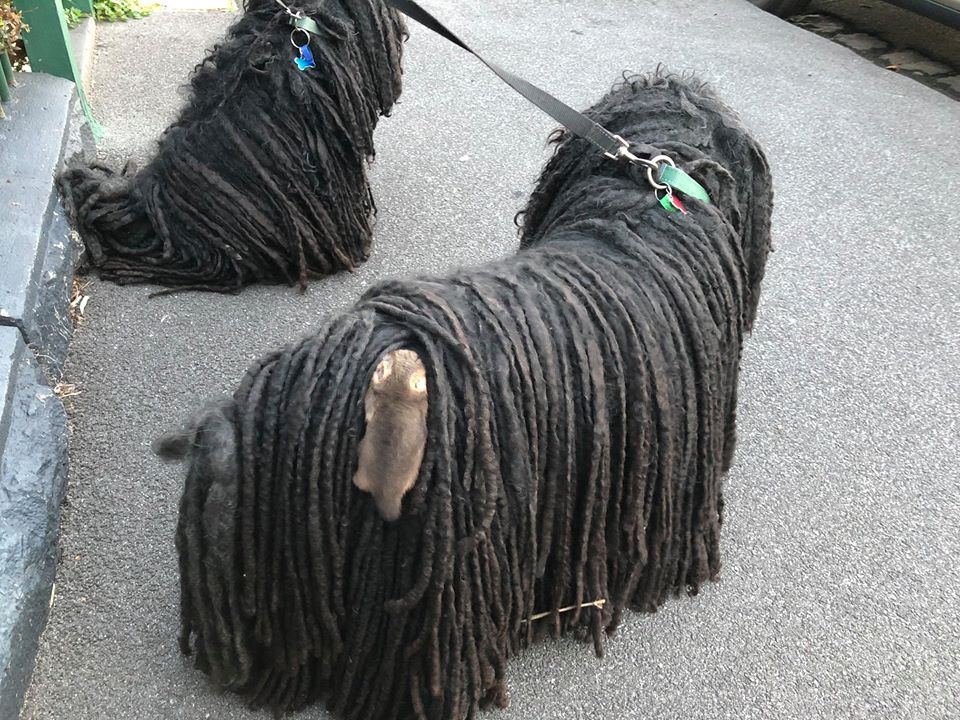借搭便車!拖把汪外出散步 身上竟出現「嬌小乘客」:這樣比較輕鬆啦~