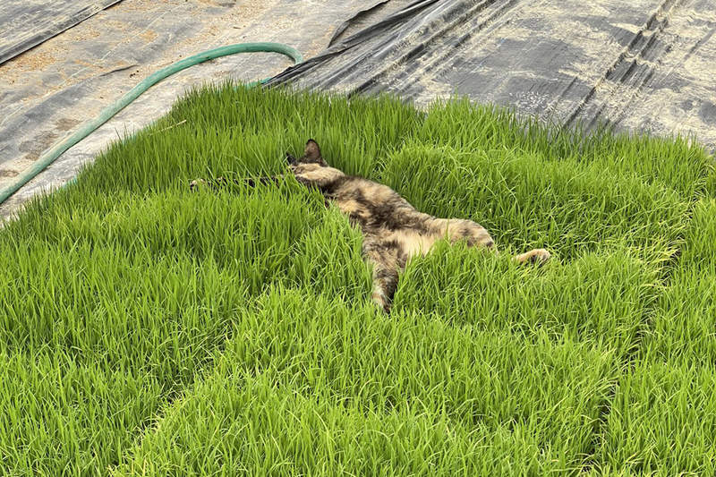 欸那不是草地!囂張貓「爽躺稻苗床」 飼主無奈:叫牠還給我躺回去