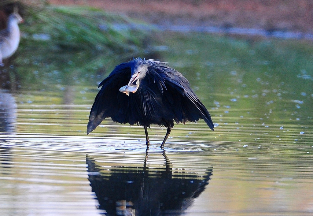 黑鷺體型不大、其貌不揚,卻有很強的環境適應能力。牠們非常聰明,會張開翅膀「撐傘」捕魚,這應該就是動物的智慧吧~