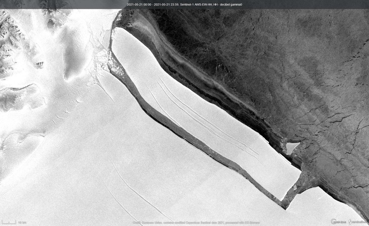 2021年06月11日又有冰山脫落。歐洲太空總署(ESA)21日表示,一塊4320平方公里的冰山,從南極洲龍尼冰棚(Ronne Ice Shelf)脫落,掉入威得爾海(Weddell Sea),成為目前全球最大的冰山。這塊冰山的面積是美國紐約曼哈頓的70倍大~
