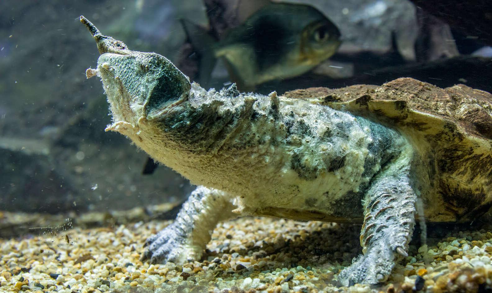 ▼楓葉龜不僅外型特別,習性還很獨特。牠們很少活動,也無法咀嚼。