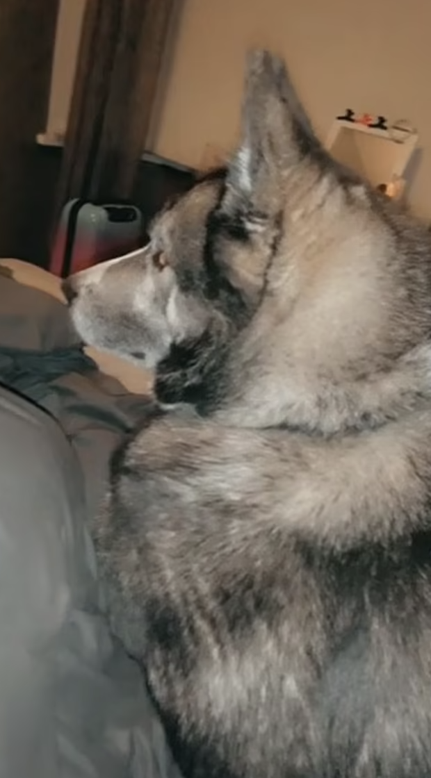 ▼其實Mia所說的「狼」是一隻哈士奇。她宿醉醒來,發現一隻大狗正轉頭盯著自己,一時之間嚇呆了。她連忙查看手機,希望找到證據,終於找到自己喝醉後拍攝的一些Snapchat影片,這才拼湊出這隻哈士奇的來歷。