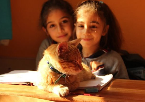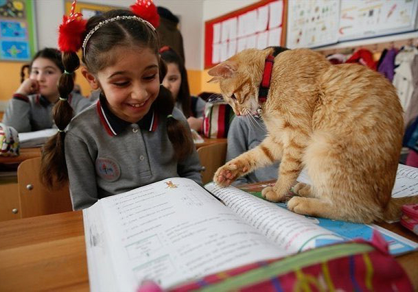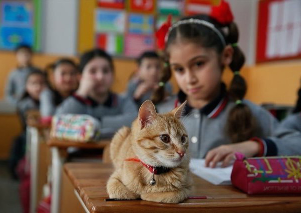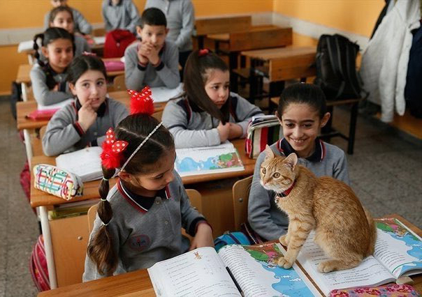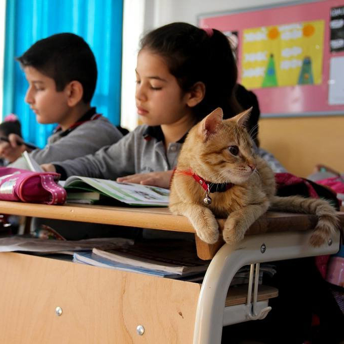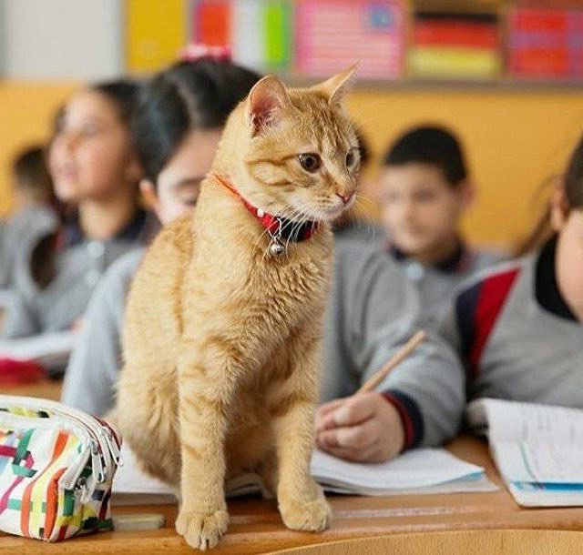 2021年06月25日這隻小橘貓來對地方了!有一天土耳其的一間小學裡來了一位不速之客,那是一隻小橘貓。牠看到小朋友們後非但不害怕,還大方走進教室,並決定留在這裡。老師和小朋友們很喜歡這隻小貓,並沒有將牠趕走,還戲稱牠是助教,並給牠取名為Tombi。現在小貓已經是學校中的一員了。