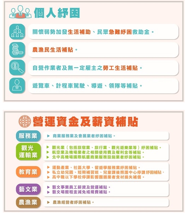 ▼龔明鑫表示,中低收入戶加碼生活補助4500元、無相關保險者的急難紓困救助金1至3萬元、自營工作者3萬元,申領資格將由主管機關後續說明。農漁民現金紓困部分,農民1萬元、漁民1萬元,甲級漁工為3萬元。除此之外,導遊、領隊和國旅領團人員、計程車、遊覽車司機等等紓困補貼總計也有3萬元。