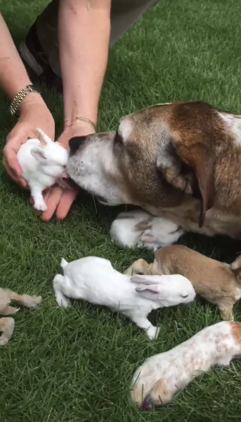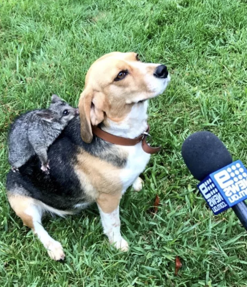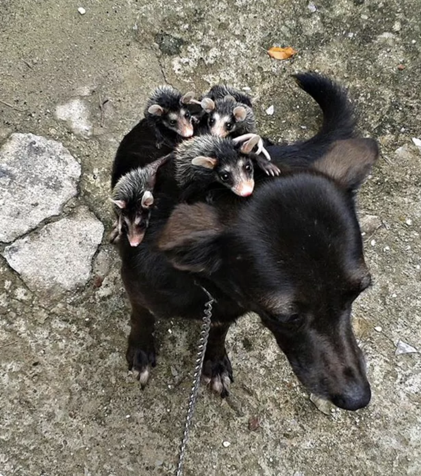 ▼2.這隻小狗失去了自己的小孩,後來收養了一隻孤兒負鼠。