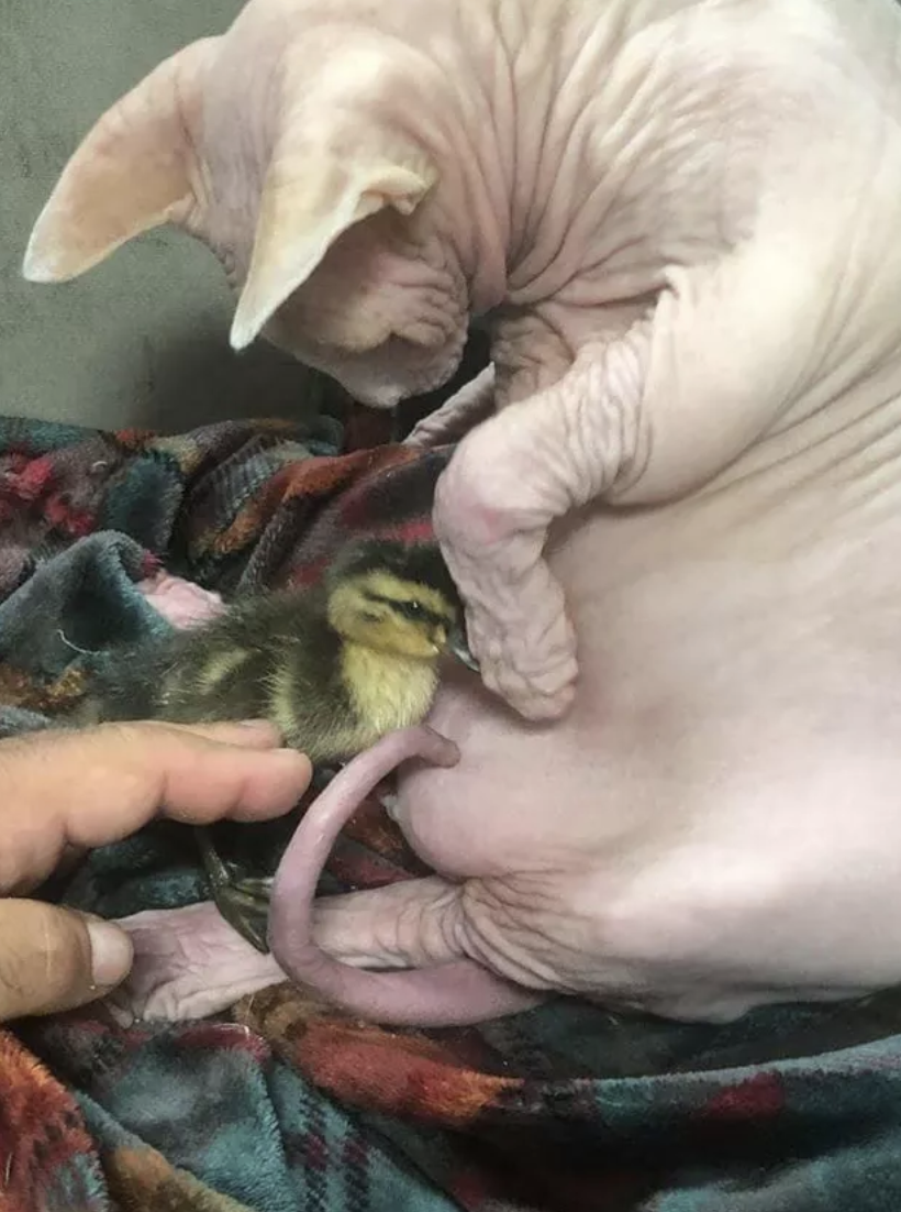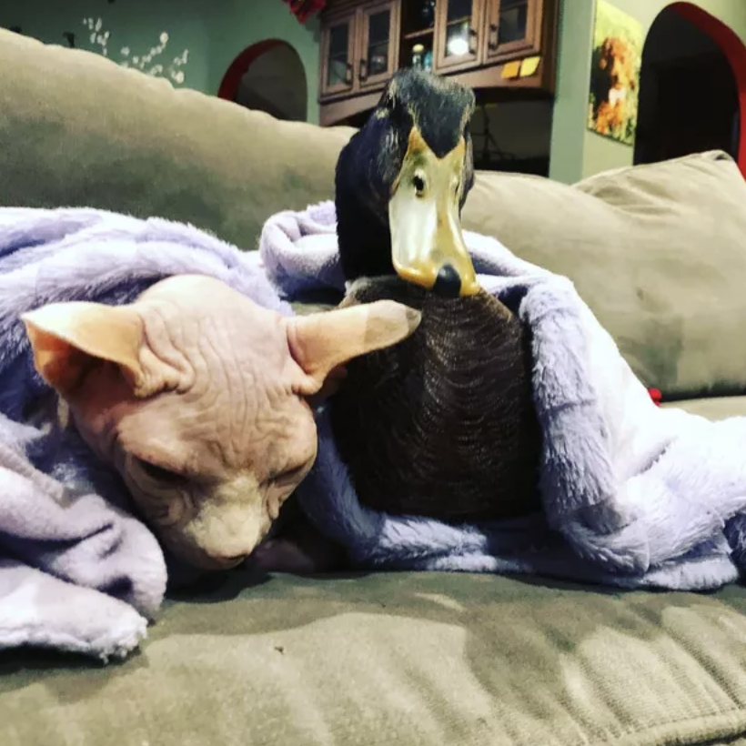 ▼現在小鴨已經長大,但還是喜歡跟貓咪在一起。