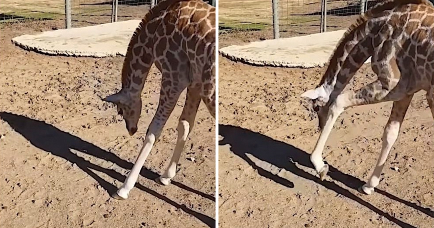 長頸鹿寶寶初次發現「自己的影子」 牠困惑緊盯反應超萌:你是哪位?