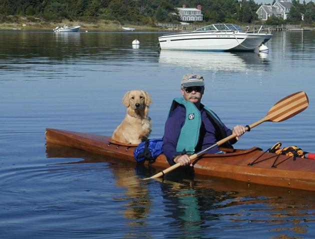 ▼David表示,有一次他去划船時,愛犬Susie自己跑到了獨木舟的行李艙裡坐下。這給了David靈感,他試著在行李艙口加裝邊條,讓Susie更加舒適、穩定地坐在裡面,而且不會被水弄濕。