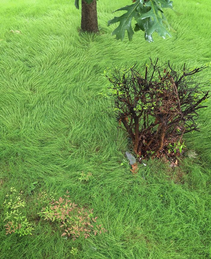 ▼一夜風雨,院子中的草坪就像梵谷的畫作。