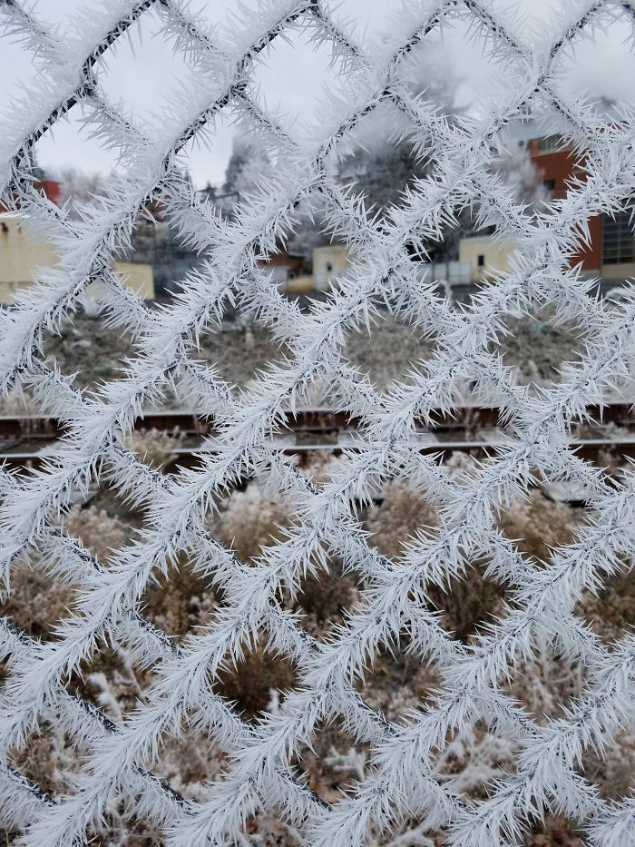 ▼早上柵欄上的窗花。