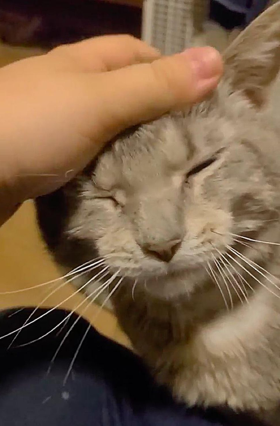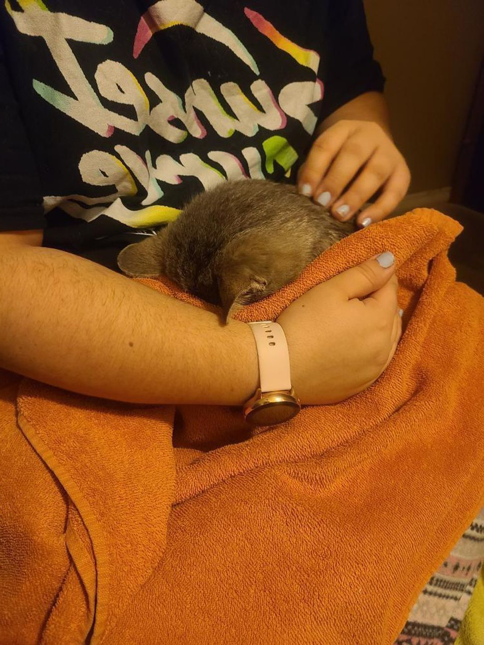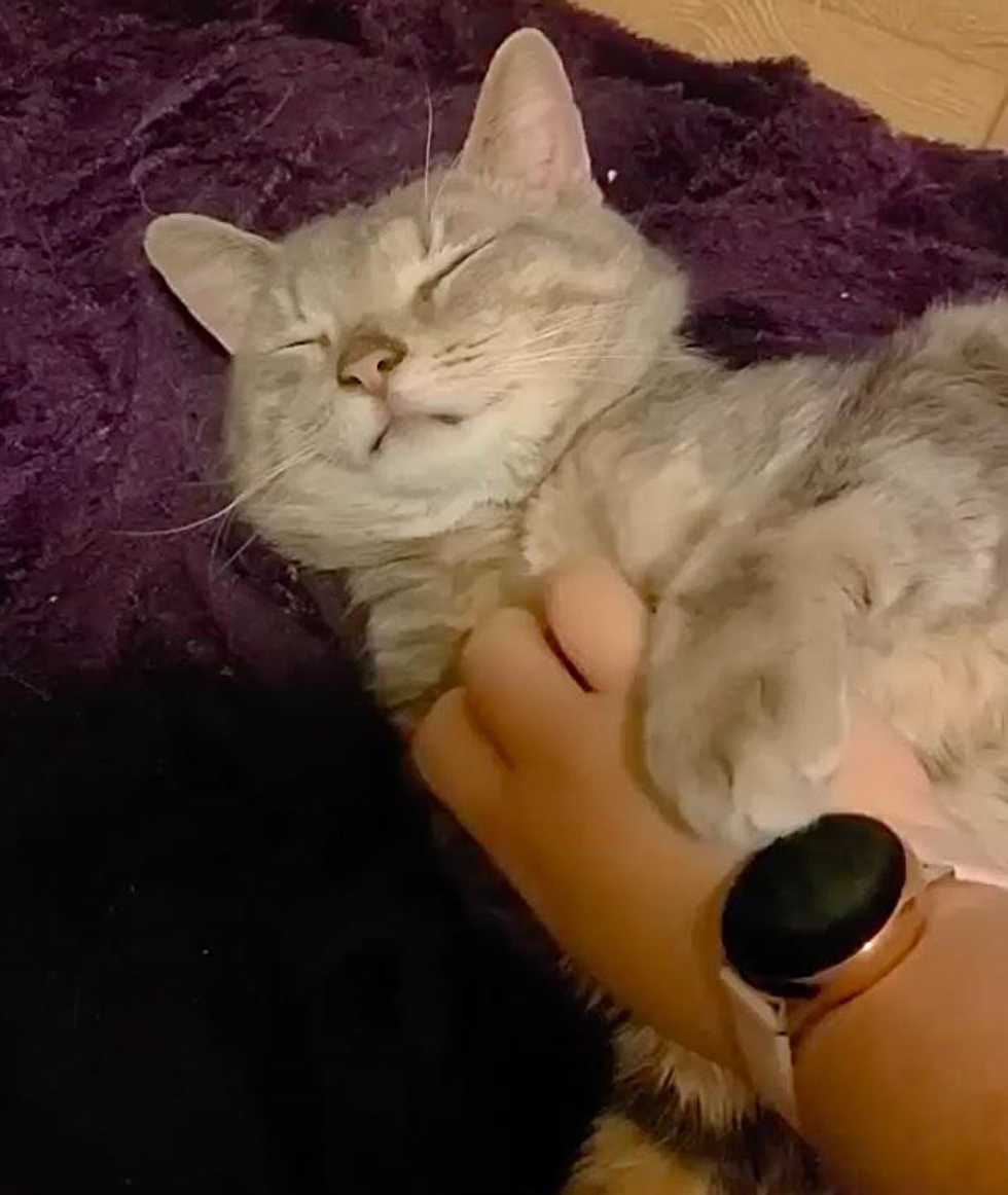 ▼Lauren幫貓咪洗澡、為牠準備食物,牠狼吞虎嚥填飽肚子後,開始好奇地到處探索。Lauren仔細觀察後發現,這隻貓咪又渴又餓、骨瘦如柴,她正在思考是不是要幫牠找人領養,沒想到牠主動爬到Lauren的懷裡,將臉埋在毯子裡進入夢鄉。
