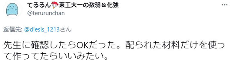 ▼「我有問過老師,老師也說OK。只要符合規定的材料就好了。」