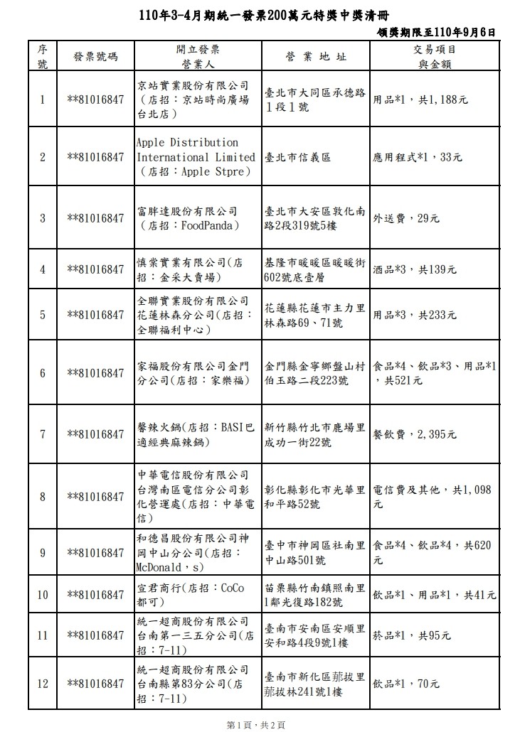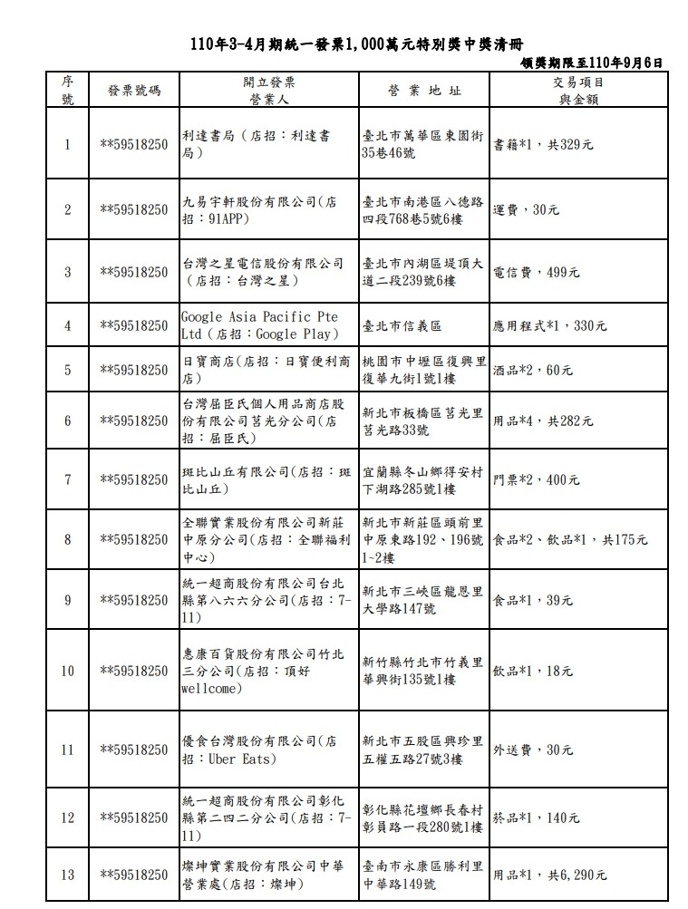 喝18元飲料對中千萬! 3、4月發票中獎清冊出爐:千萬大獎有18張