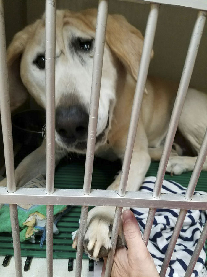 ▼5年對一隻狗狗來說是一段漫長的時光,Beaux在那樣的環境中長大,身體狀況很差,而且感染寄生蟲,骨瘦如柴,非常痛苦。