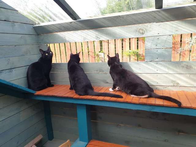 ▼還沒等Derek把這個想法實現,Jellli的身體就出狀況了。癒後的牠每天都很慵懶,看起來沒精神。女友後來領養的2隻貓咪也很喜歡到戶外玩,於是Derek決定在院子裡建遊樂場,不僅有利於Jellli恢復健康,還能讓貓咪們玩得開心。
