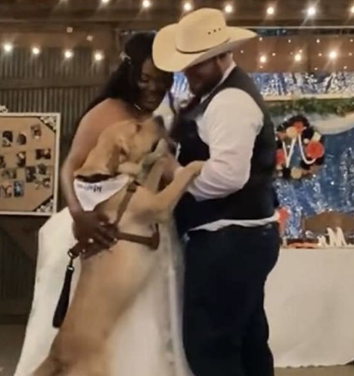 2021年06月24日婚禮是人生中最重要的日子之一,這一天要充滿愛與溫暖!美國德州(Texas)的一對新人在婚禮上跳第一支舞,用舞步向現場的賓客傳達濃情蜜意時,竟然有一個「小三」突然出現。那是他們的毛孩,牠也要加入到把拔馬麻的幸福時刻中來。