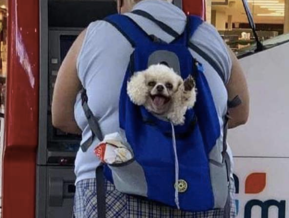 2021年06月16日很多主人會帶毛孩一起外出,路人看到可愛的毛孩,也會被牠們萌到,覺得非常療癒。下面這位網友外出散步,路過一家銀行門口的時候,發現有一名女子正在ATM上操作,而這名女子的背包裡面竟然有一隻萌萌的狗狗。狗狗一臉笑容看著路人,並熱情地跟路人打招呼。