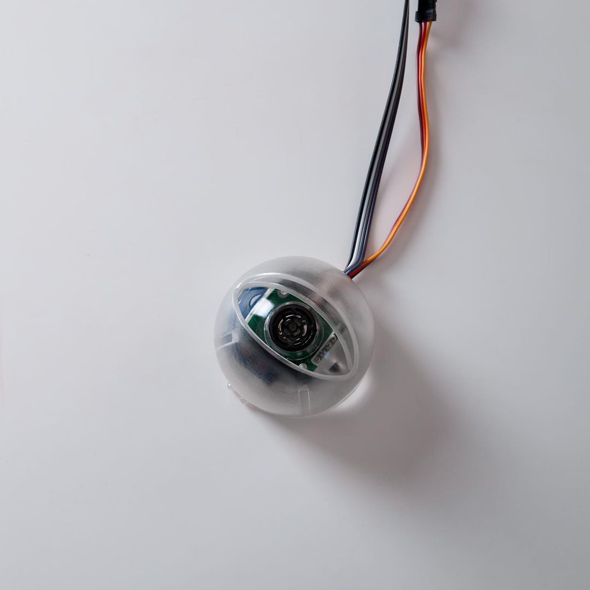 ▼「第三隻眼」是一款頭戴式裝置,戴上它後,低頭時半透明塑膠殼會立刻打開,裡面的感測器則會發射聲波,掃描路況。一旦偵測到前方1.5公尺處有障礙物,就會發出警告,提醒低頭族快點看路。設計師說:「我製作的『第三隻眼』,專門幫低頭族殭屍們,走在路上玩手機時避開障礙物。」