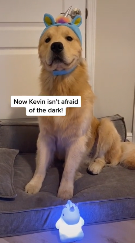 2024年02月11日狗狗竟然也會怕黑?!國外有一隻叫Kevin的黃金獵犬,牠因為太怕黑了,每晚都要馬麻抱著哄好久才能睡著。馬麻為了讓Kevin能好好休息,決定送給牠一份特別的禮物,那就是一盞小夜燈~