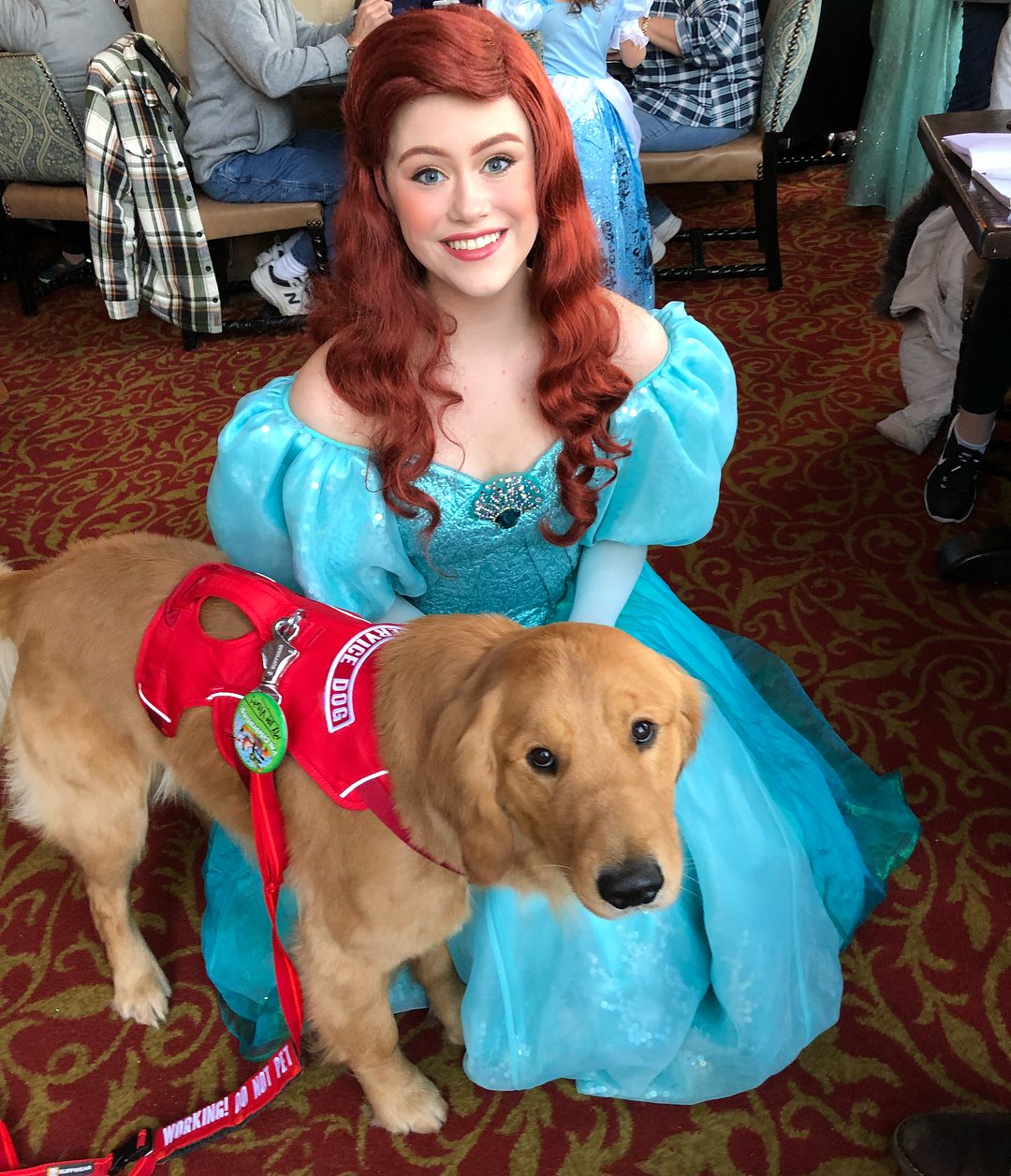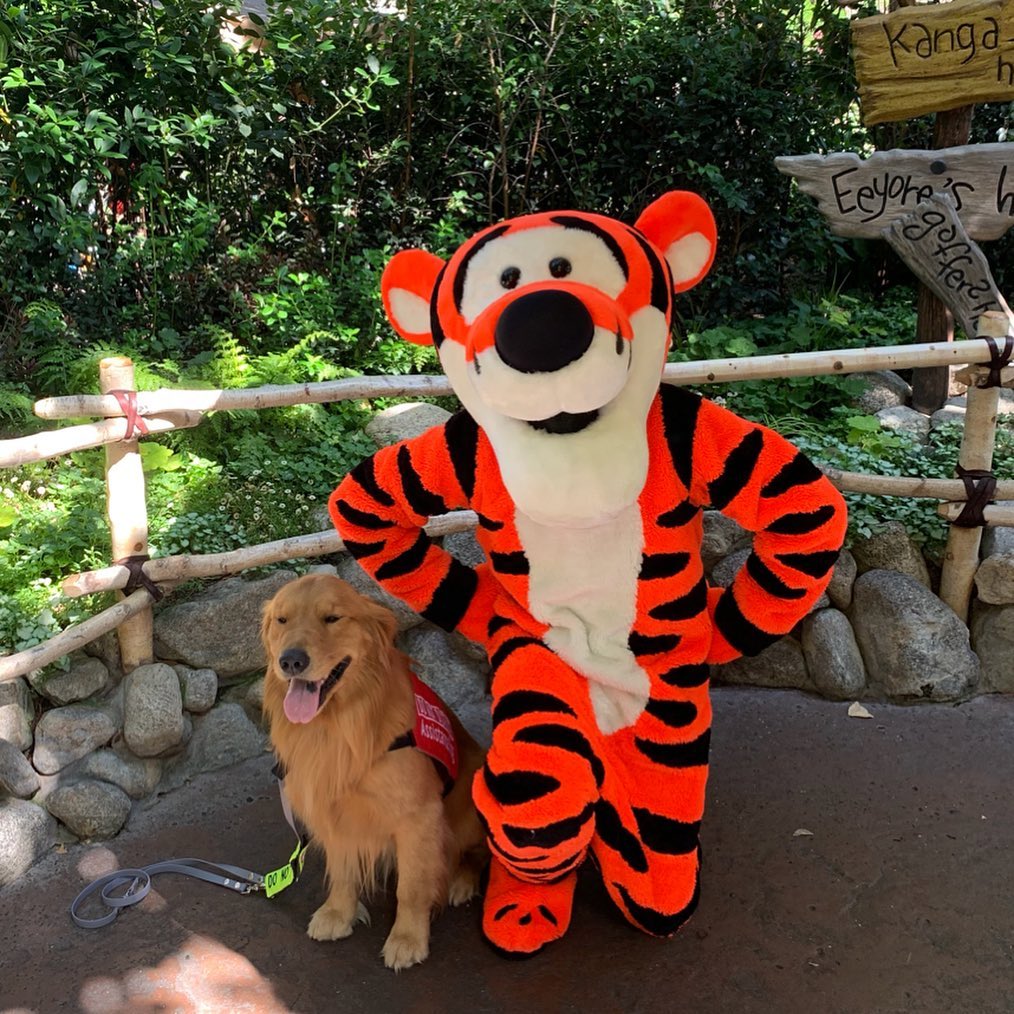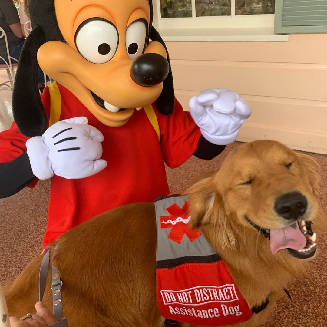 ▼服務犬需要經過嚴格的訓練,為了讓Henry適應高壓工作環境,Jessica經常帶牠去迪士尼樂園。Henry非常喜歡那裡,牠頭戴小髮箍、跟各種卡通人物合照,臉上的笑容非常燦爛。