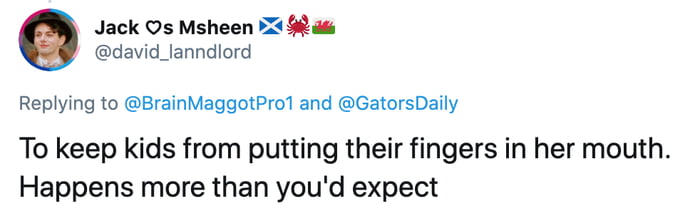▼知情的網友解釋說:「是為了避免孩子們把手指伸到牠的嘴巴裡。這種情況發生的次數比你想像中要多。」