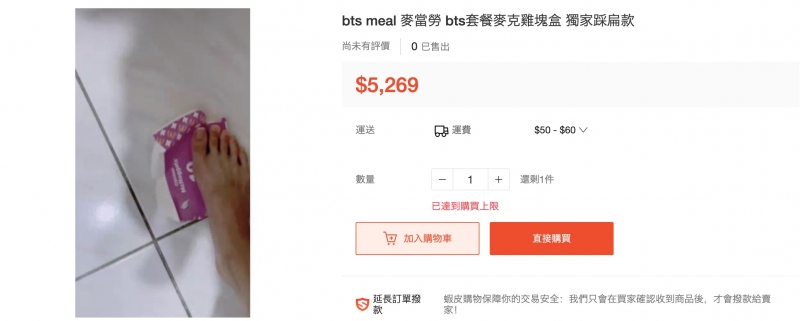 ▼國外ebay上的二手「The BTS Meal」套餐包裝售價高達台幣2000元,引發網友討論。
