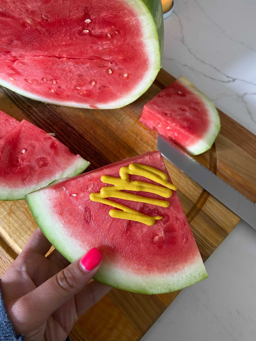 @yayayayummy 🍉 + 💛 SOOO GOOD!! #watermelon #mustard #hotfoodtake