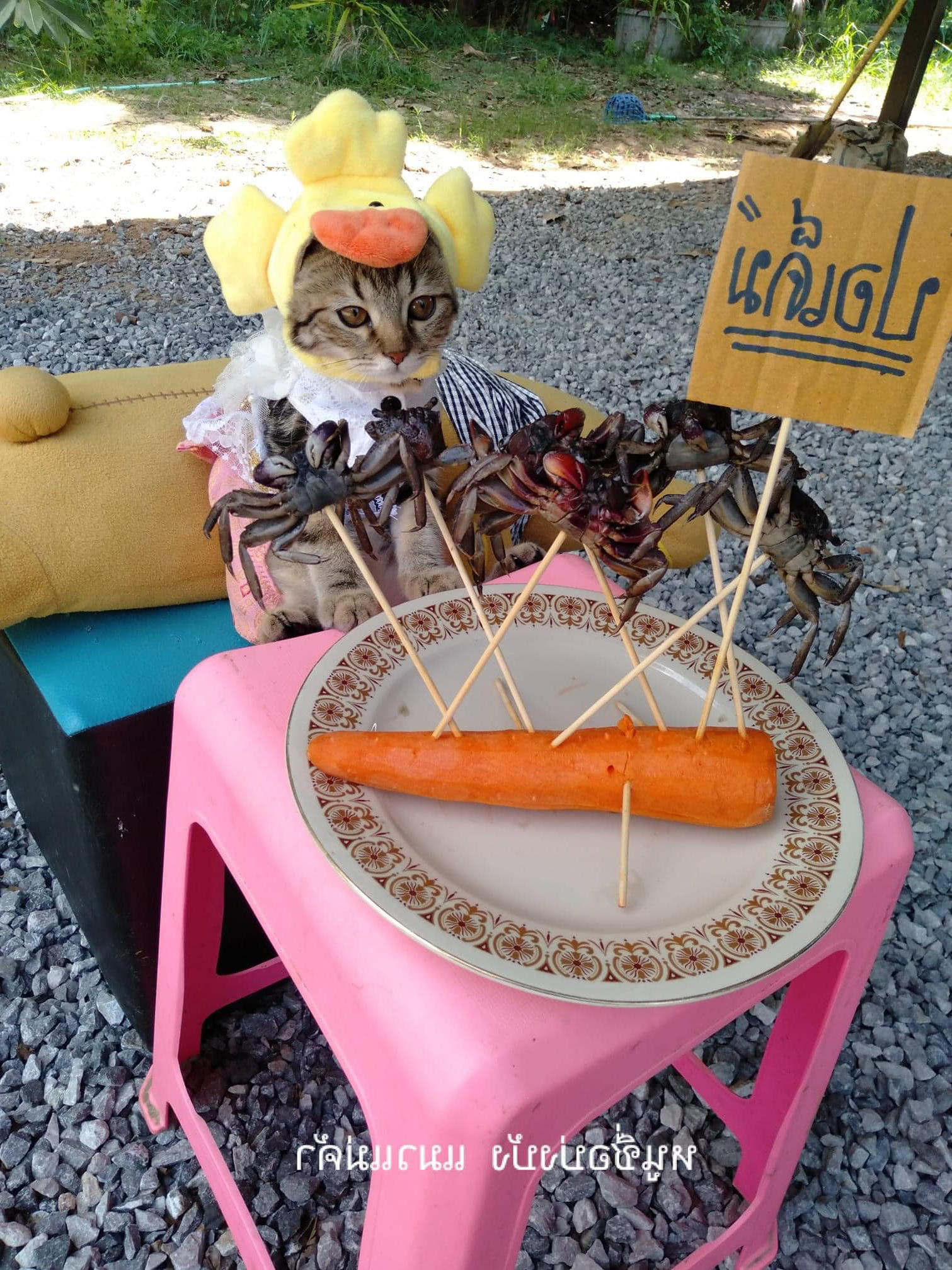 2024年03月01日貓咪不僅要賣萌,還要努力工作,真的好辛苦!最近泰國街頭出現了一隻可愛的「工作貓」,牠戴著可愛的小帽子,打扮得有模有樣,坐在掛滿食物的小椅子上,就像在向路人兜售一樣。這隻特立獨行的貓咪引來網友們的關注,大家都覺得牠超Q萌。