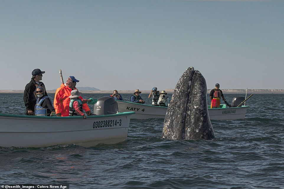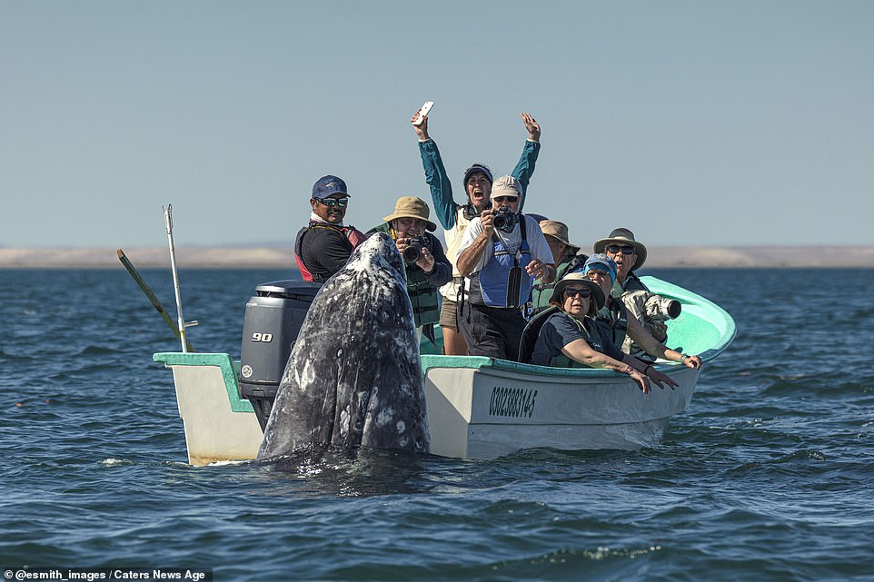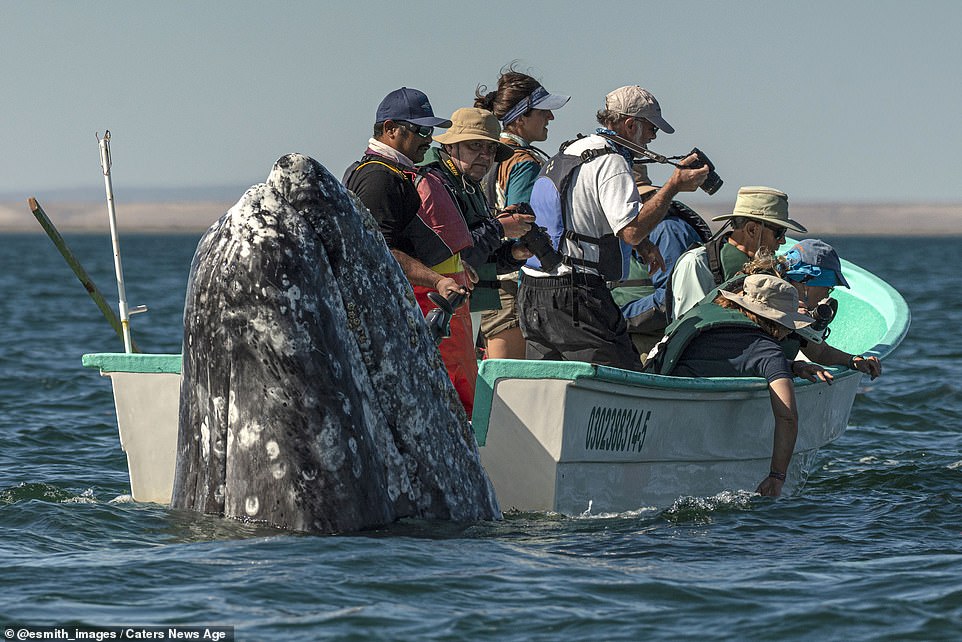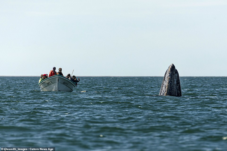 因為數十年的商業捕鯨,估計野生灰鯨只剩200隻左右。這些遊客非常幸運,竟然能那麼近距離地看到灰鯨!