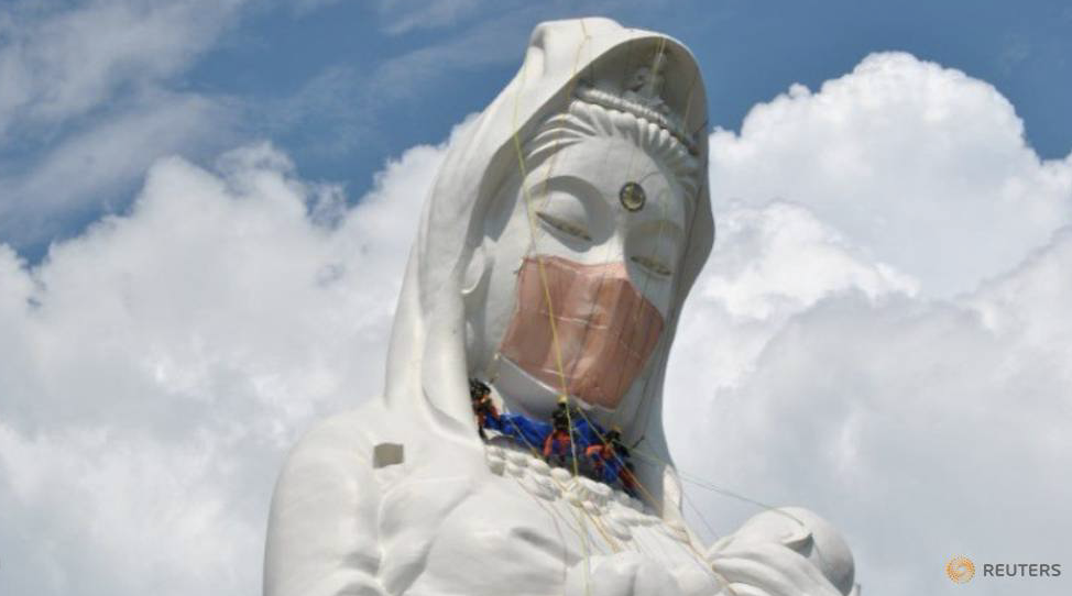 當地主持表示,給觀音像配戴口罩,是為了傳遞「守護自己才能守護四周的人」的訊息。在疫情趨緩之前,大觀音像都會配戴著口罩,以這樣的方式守護當地市民,並祈願疫情退散。