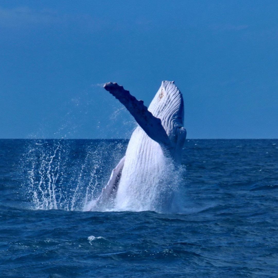 在近4萬隻座頭鯨中發現Migaloo,如同大海撈針。賞鯨者能夠看到白色座頭鯨,簡直是天大的運氣。不過昆士蘭州法律規定,禁止船隻靠近Migaloo500公尺範圍內,否則將被罰款。賞鯨也要保持距離啊~