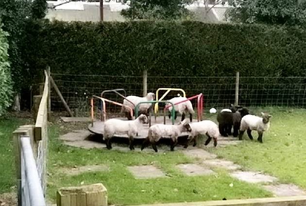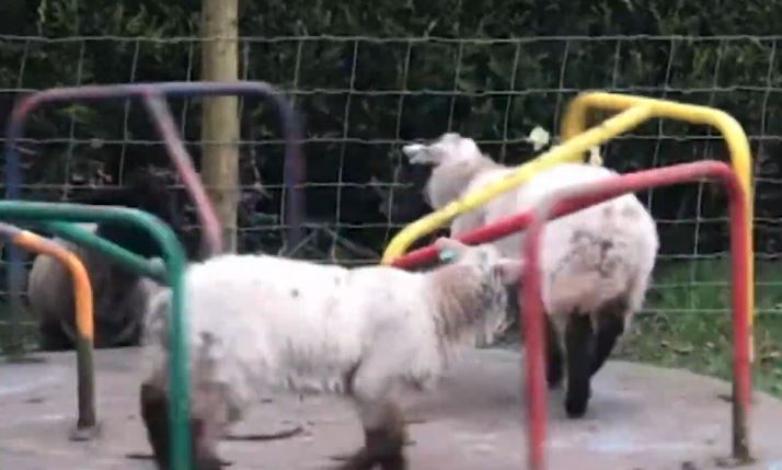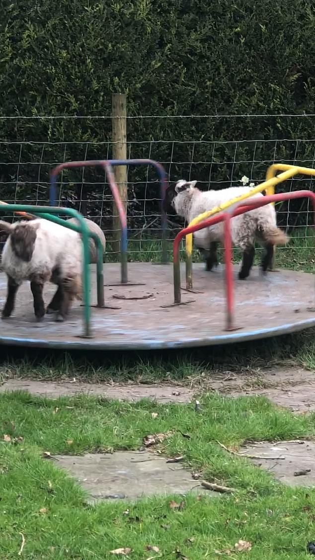 包場囉~ 英國「沒人出門」公園空蕩蕩 小綿羊們「排隊玩轉圈圈」:竟然有這麼好玩的東西!