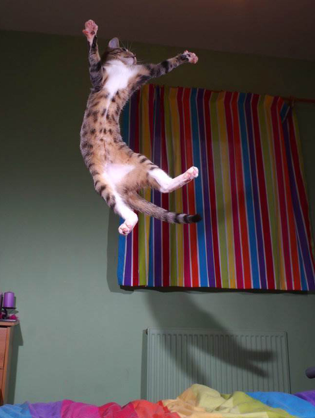 貓咪天生就適合跳高,牠們的骨骼就是為此而生的。牠們在野外需要強大的跳躍力來獲得食物,幫助牠們更好地生存下去。McConnell捕捉到的愛貓跳躍瞬間都超級帥氣,怪不得大家都愛貓咪這種動物啊~