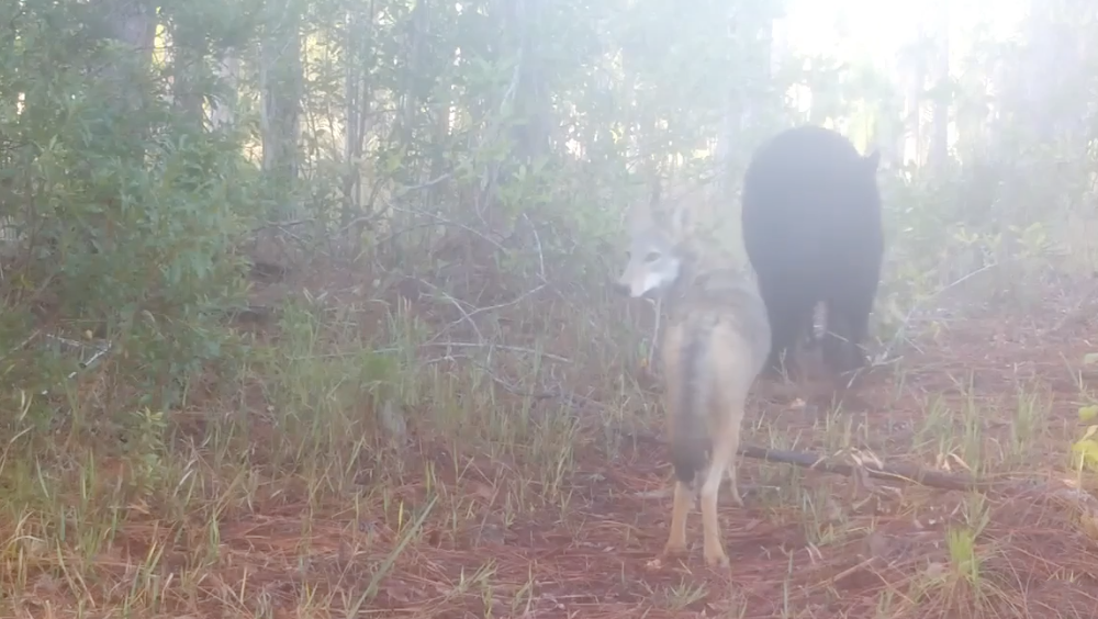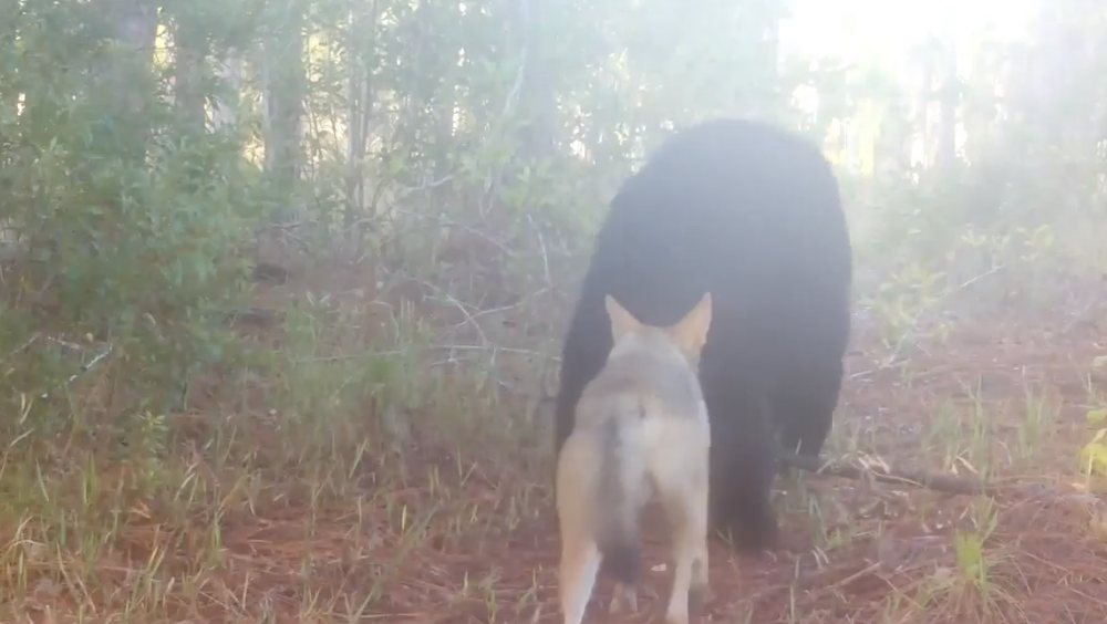 2021年07月15日自然界中存在跨越物種的友誼!美國佛羅里達州魚類和野生動物保護委員會(MyFWC Florida Fish and Wildlife)在那不勒斯(Naples)的樹林裡架設隱藏攝影機,觀察野生動物的日常。最近他們竟拍到了黑熊與郊狼一起散步的畫面。牠們一前一後穿過樹林,和平友好的樣子就像好朋友一般。