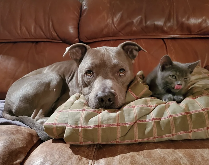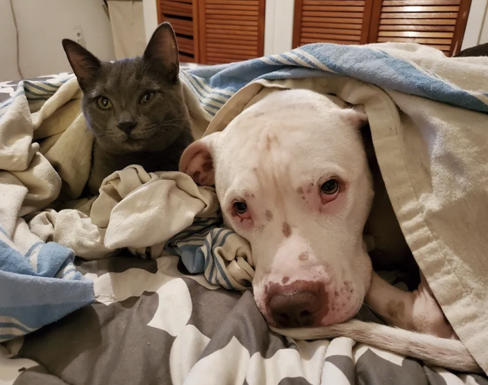 ▼除了Casper,家中另一隻7歲的狗狗也很喜歡Félix,還會跟牠分享一條毯子。
