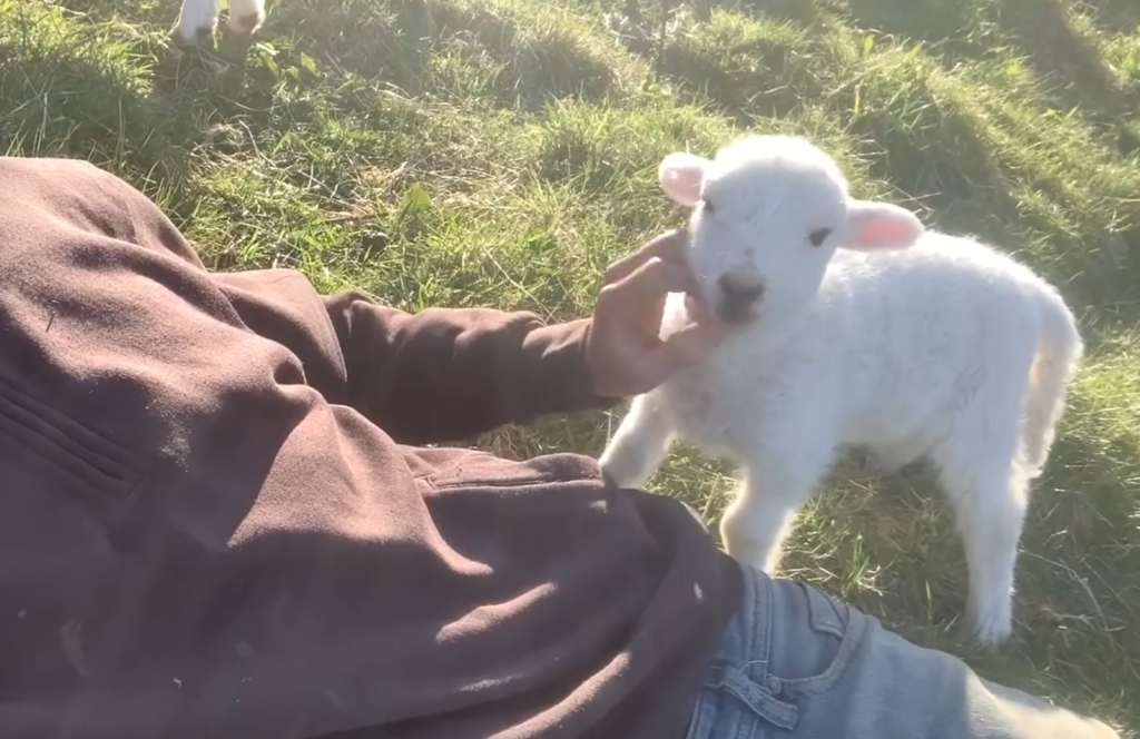 羊界磨人精!雪白小羊享受「人類摸摸」 一停馬上戳戳:快點繼續呀~
