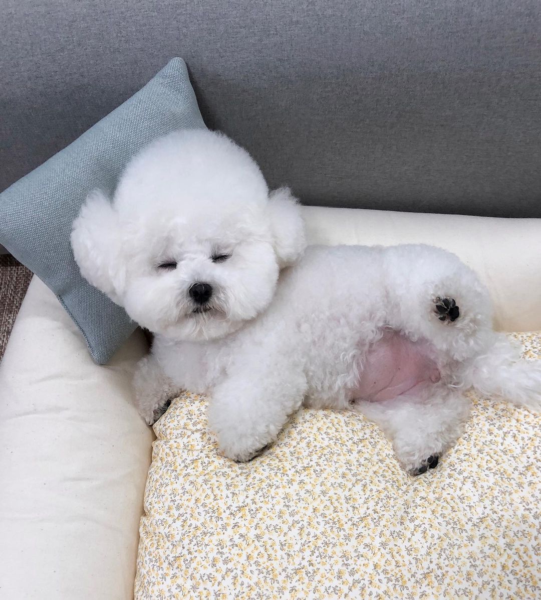 阿母快看!比熊趴地「無辜露肉球」 網友全萌化:上面還有泰迪熊耶❤