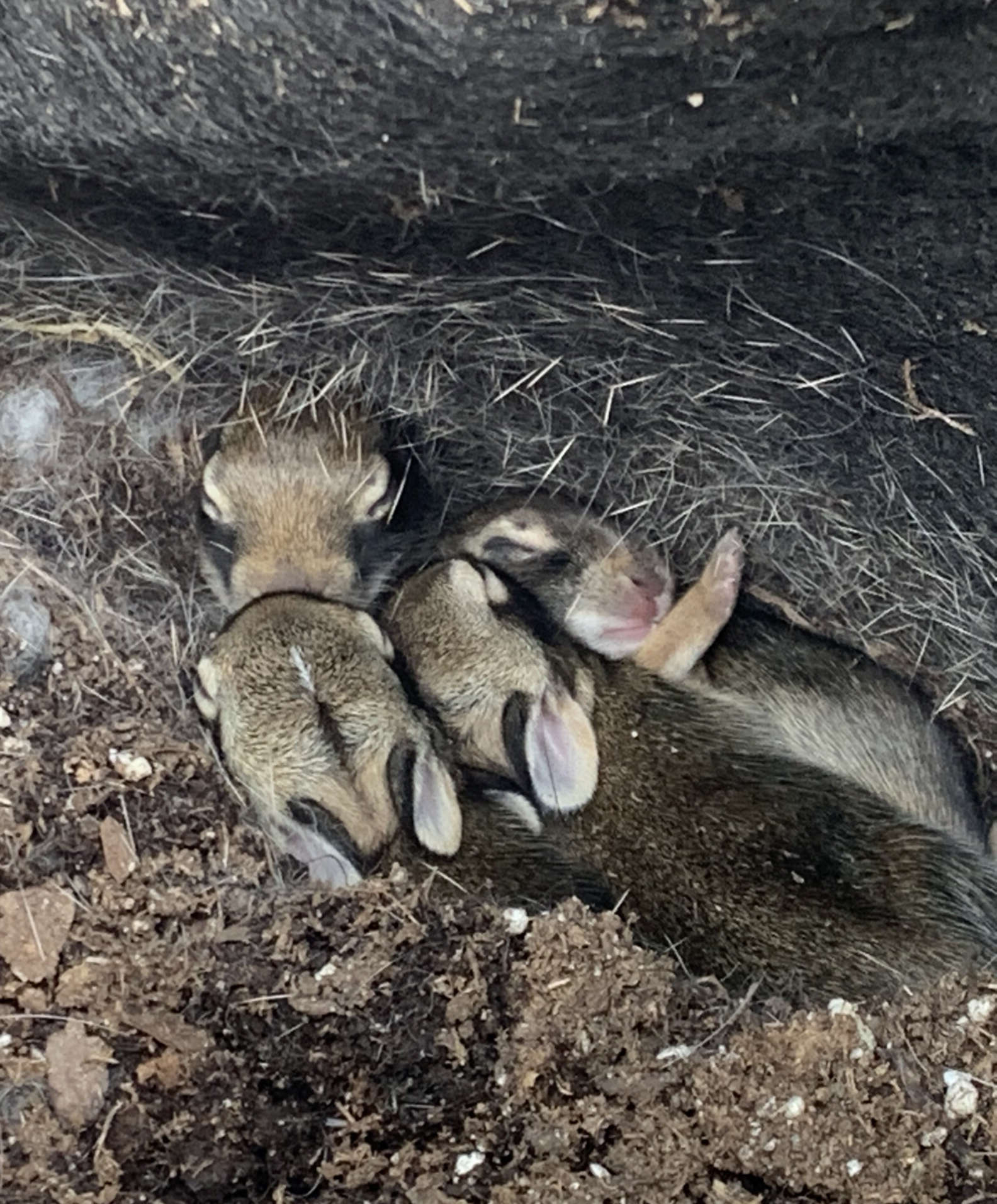 ▼員工們注意到,兔媽媽經常回來照顧寶寶。雖然這個麻布袋並不是育兒的最佳地點,但員工們還是努力保護兔寶寶,讓牠們不被干擾。兔子會在2到3週大時離開巢穴獨自生活,到時候牠們就能離開麻布袋,去野外展開新生活了。