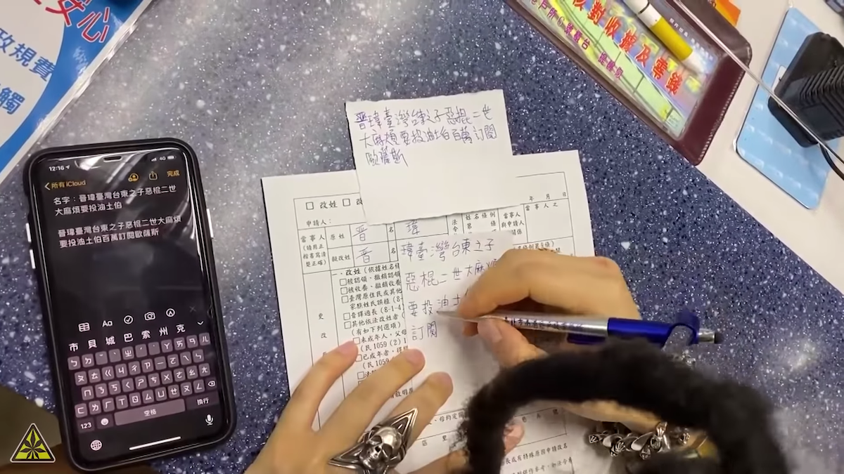 ▼但也由於名字長度太長,姓名欄部分需要由承辦人員手寫字體上去,而他們一行人也試著去測試更名後,生活上可能會遇到的種種不便,例如領包裹、預約看牙醫等等,雖然大部分人在第一次看到身分證時候都會愣一下,但是最後「要投」還是都可以順利達成目的。影片最後還遇到警察臨檢,當警方查驗身分證時,第一時間疑惑「這自己畫上去的喔?」,但隨後得知真的是本名後,也就放行他們。