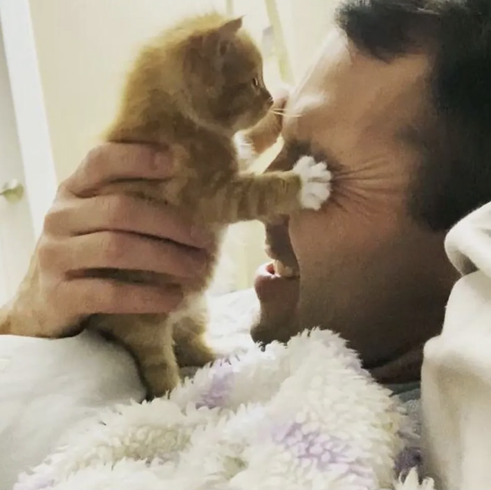 ▼Ranger是一隻非常勇敢的貓咪,牠也教會了其他小貓一些事,比如安靜趴在Danica的膝蓋上陪伴對方、在大床上盡情翻滾玩鬧等等。