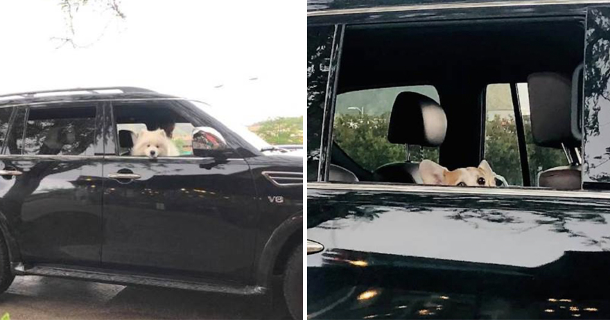 同狗不同命!2隻汪坐車裡看風景 一隻超悠哉「另一隻差點不見」