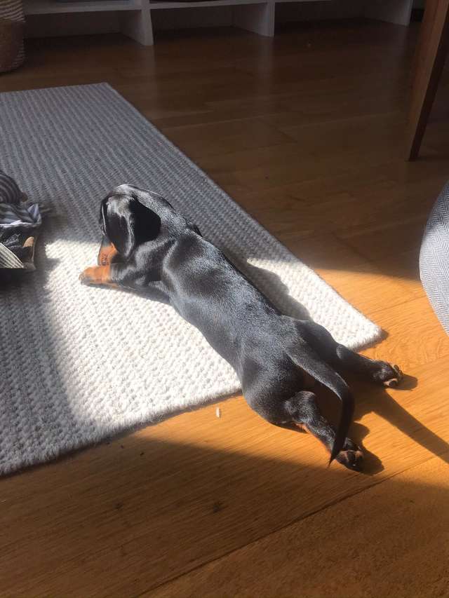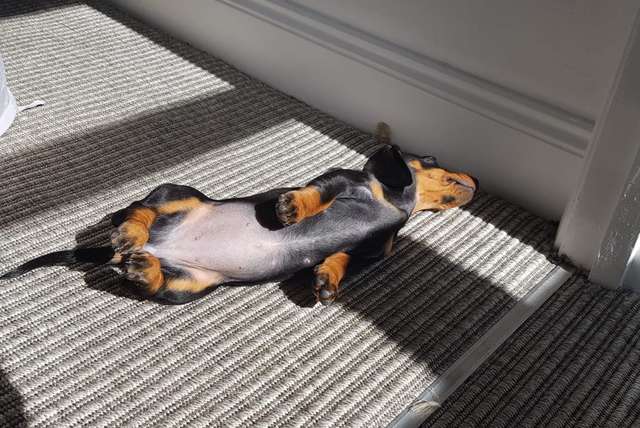2024年03月02日國外網友Freddy Masters養了一隻叫Nellie的臘腸犬。Nellie剛剛3個月大,正處於成長期,每天都需要大量的睡眠。牠有一項超強的天賦,那就是追逐陽光!只要陽光照進來,Nellie就會曬著太陽酣睡,那畫面超可愛~
