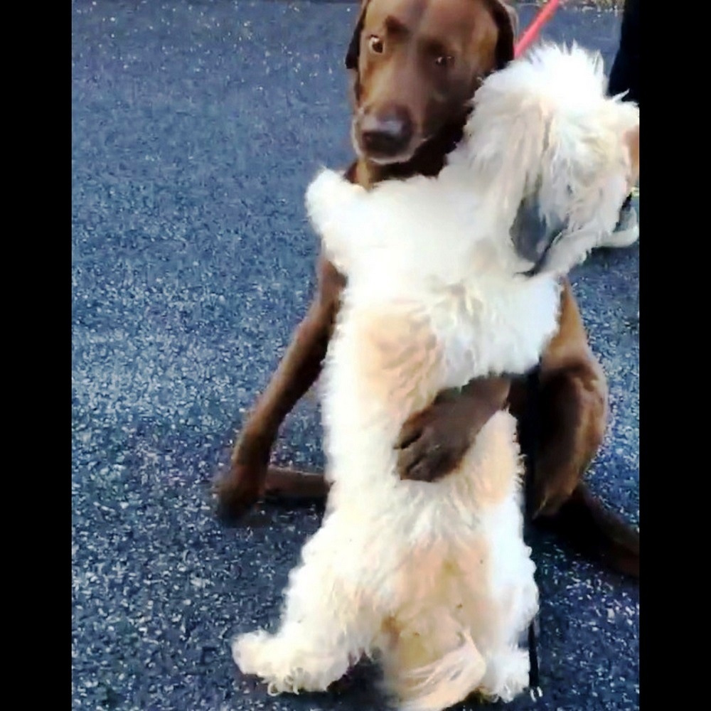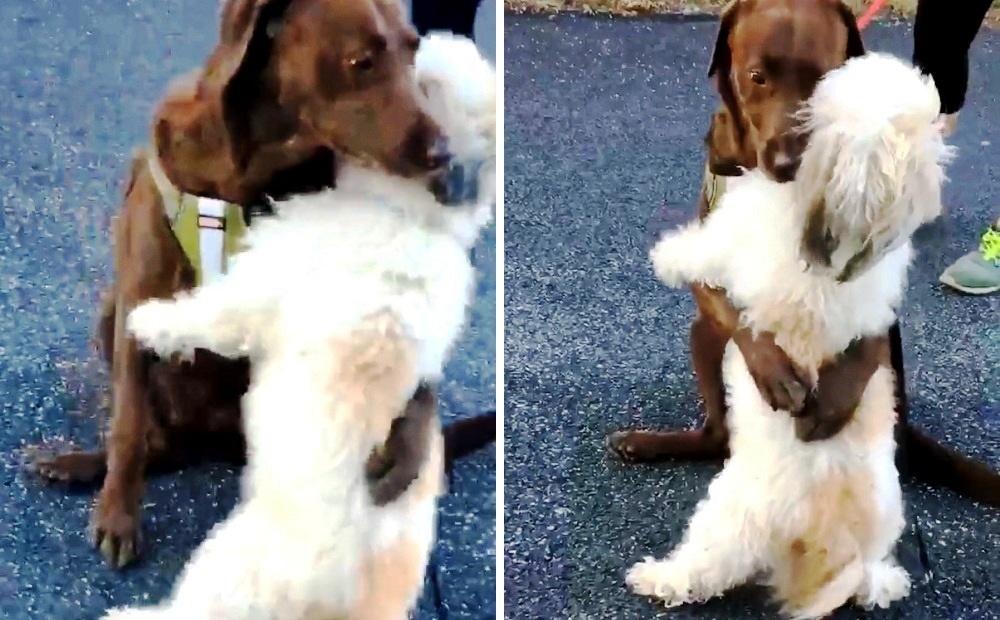 狗狗不會說話,但牠們會用實際行動表達愛意。這兩隻狗狗的友誼非常深厚,牠們緊緊擁抱的畫面超療癒!
