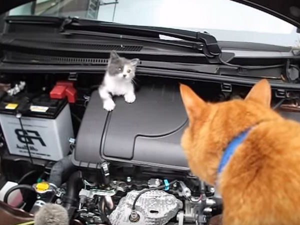 引擎蓋裡「躲小奶貓」怎樣都不出來 只好派鄰居大橘幫忙喊:裡面很危險!