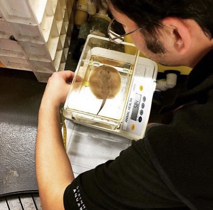 ▼水族也要定期稱重喔。